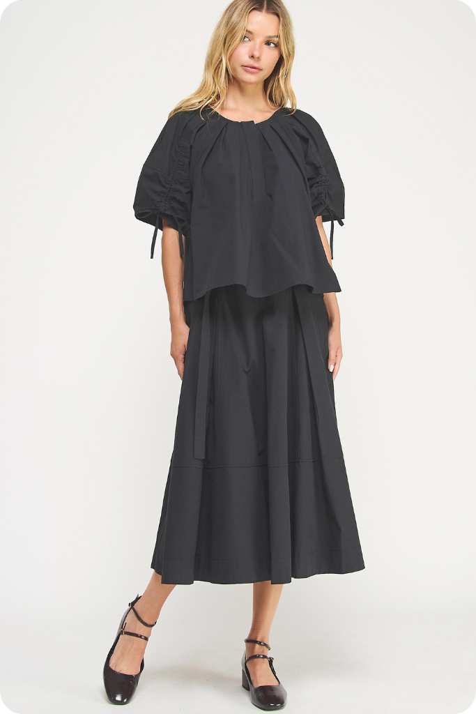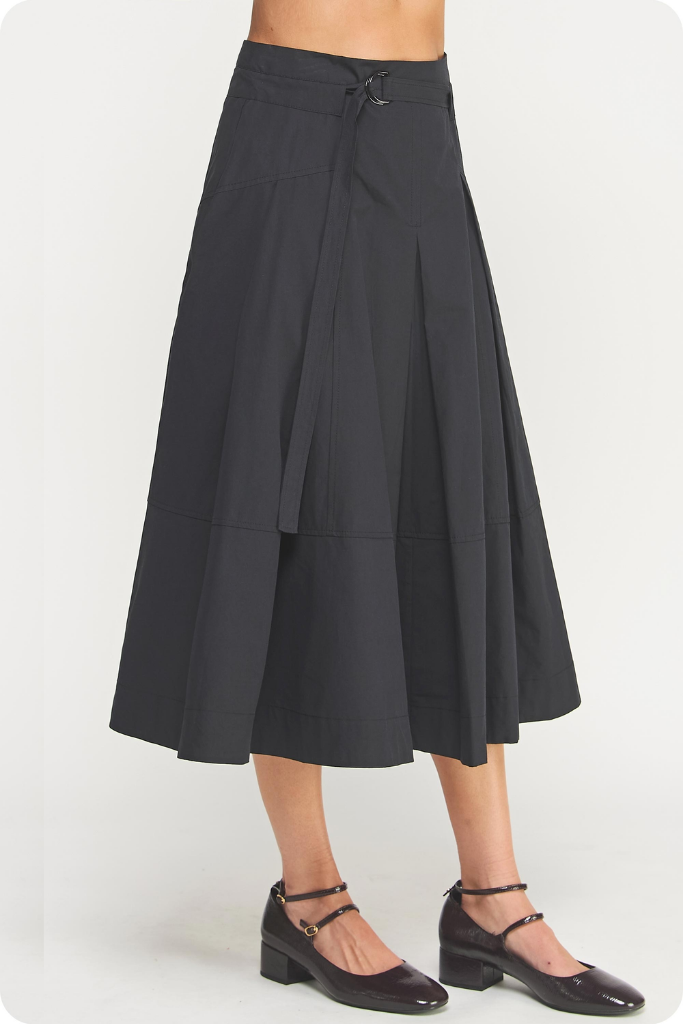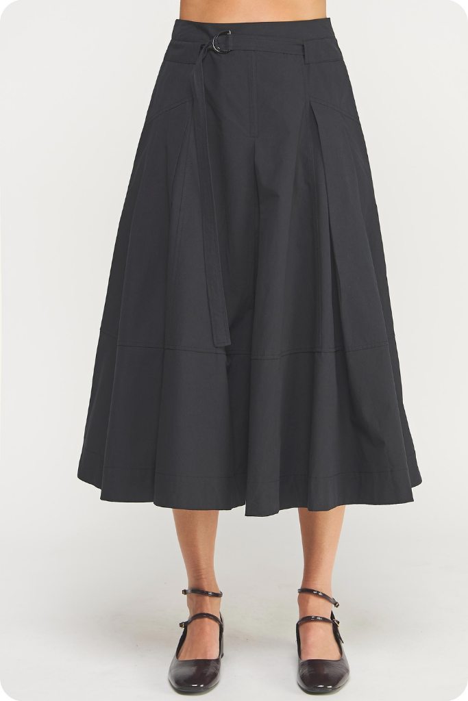 Liana Belted Midi Skirt in Black